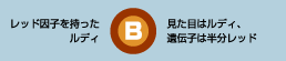 レッドになるためにはルディ因子(優性)があってはなれませんので、レッドにはレッド因子しかありません。実際に交配をした場合、どのような毛色のソマリが生まれてくるのかここで説明します。